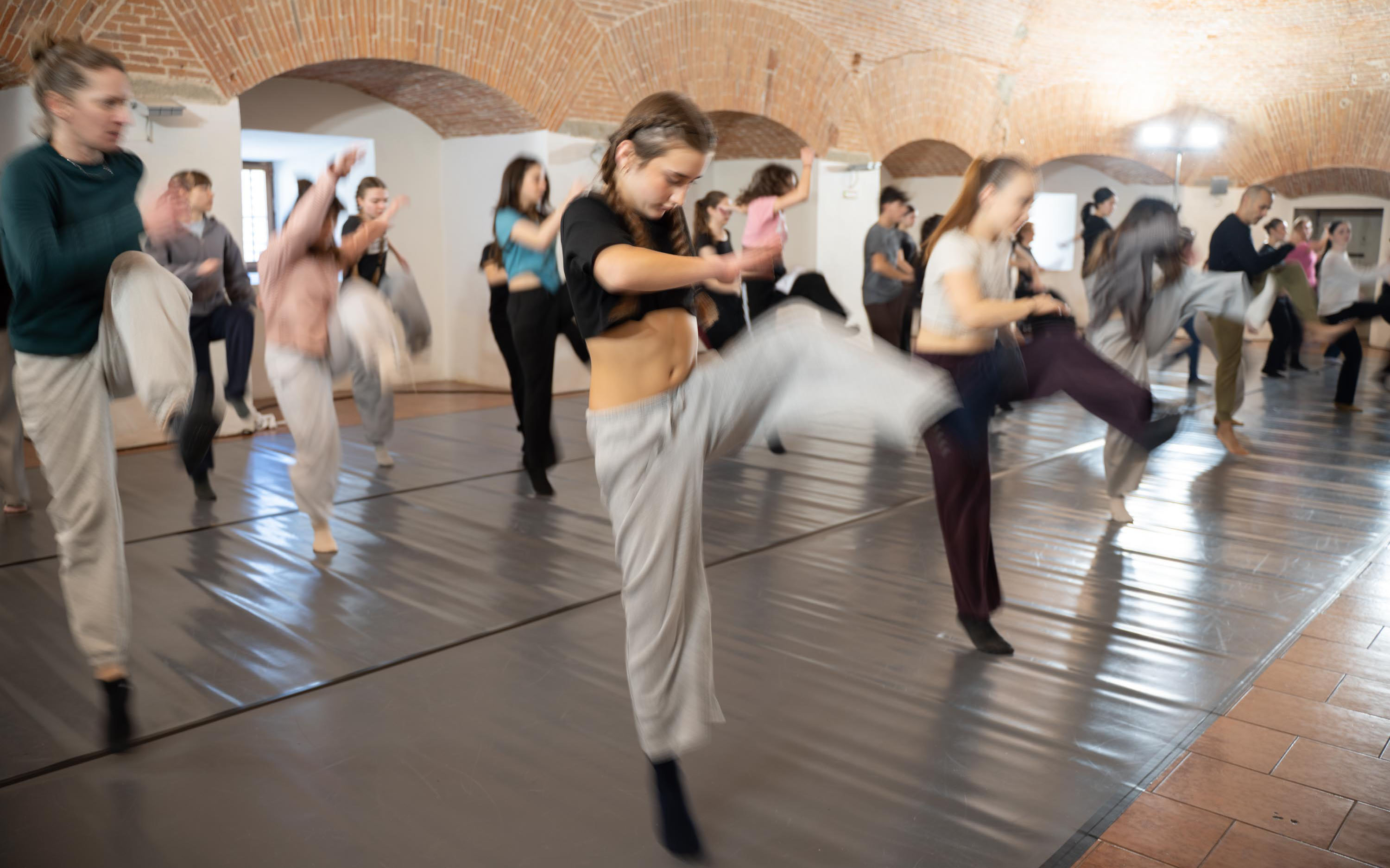 C’è anche una fase, detta “del massaggio”, in cui si lavora a coppie: uno si sdraia a terra, l’altro effettua con i piedi e con le mani delle pressioni localizzate o scivolate sulle varie parti del corpo del compagno, allungando i suoi muscoli e sciogliendo le tensioni presenti. «Insomma, il warm-up non interessa solo legamenti, muscoli e articolazioni ma diventa una “danza per il corpo”, un’occasione per risvegliarlo delicatamente e garantirgli benessere ed efficienza» conclude la coreografa.
