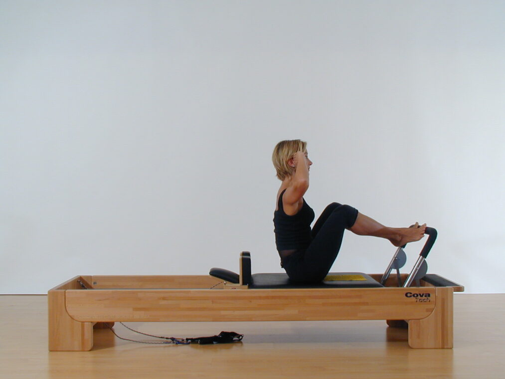 Si esegue sul Reformer, dopo avere agganciato al carrello mobile due molle. Il core (che Pilates chiama Powerhouse) è il fulcro del movimento, perché funge da cerniera fra la parte superiore e quella inferiore del corpo e, attivandosi, mantiene la stabilità