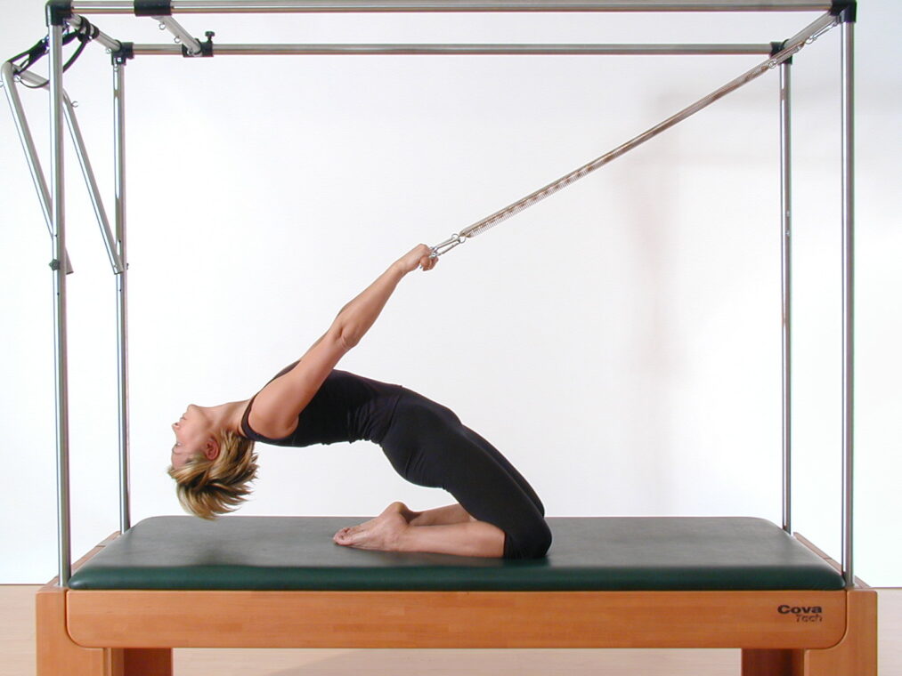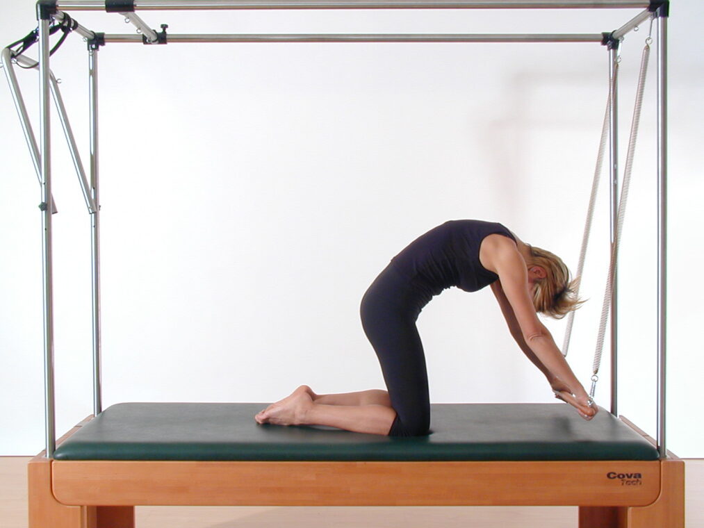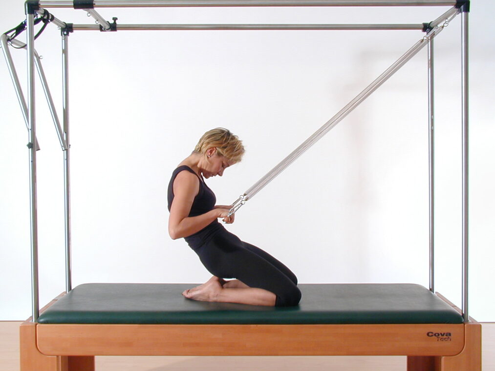Anna Maria Cova, fisioterapista e fondatrice della CovaTech Pilates School, suggerisce un esercizio sulla Cadillac per mobilizzare opportunamente la colonna vertebrale, tonificare gli addominali e far lavorare tutta la muscolatura del core con un gioco di potenziamento e allungamento: si chiama Rolling in.