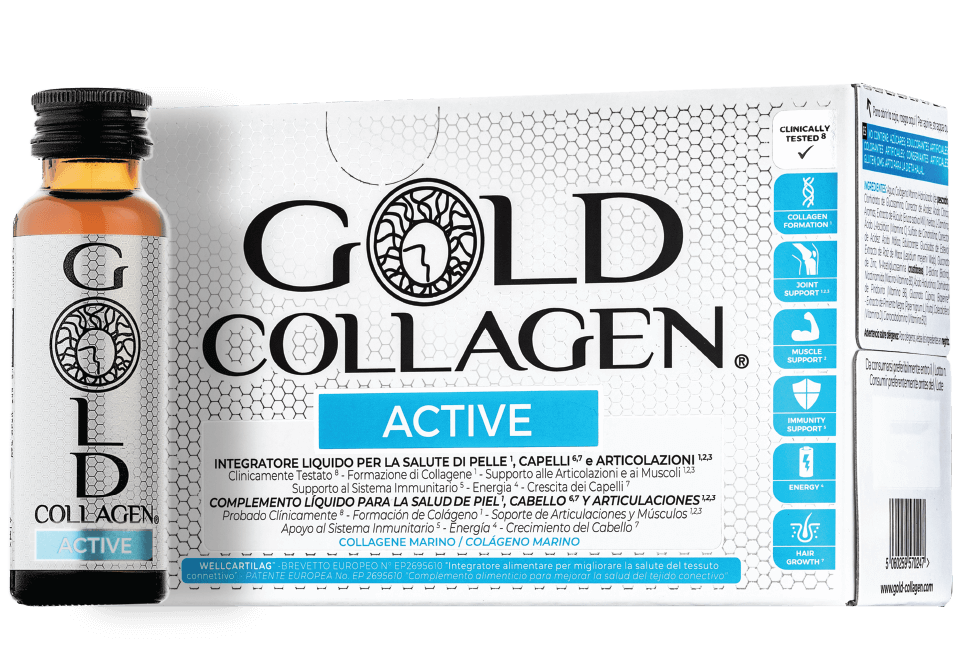 Responsabile insieme all’elastina dell’impalcatura di sostegno della cute, il collagene, presente al 70% nella pelle giovane, con il passare del tempo diminuisce in quantità. E questo succede già a partire dai 20 anni, in un processo lento e graduale che determina una progressiva perdita di tono e di densità della cute nonché un indebolimento delle cartilagini. Diverse ricerche hanno dimostrato che è possibile aumentare la produzione di collagene nella pelle e nei tessuti connettivi consumando nutraceutici a base di collagene, vitamine e minerali adeguati. Il collagene assunto per via orale, infatti, grazie a formulazioni come quelle proposte da Gold Collagen, riesce a stimolare i fibroblasti, cellule deputate alla produzione di fibre elastiche. Il collagene idrolizzato è in grado di agire in sinergia con vitamine antiossidanti (A, C, E), cruciali per rallentare il processo ossidativo delle cellule e per prevenire l’invecchiamento, con il coenzima Q 10, altro potente antiossidante, con l’acido ialuronico, indispensabile per l’idratazione cutanea e con la N-acetil-D- glucosamina, molecola che favorisce la sintesi di nuovo collagene e acido ialuronico da parte del corpo.