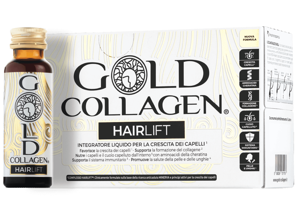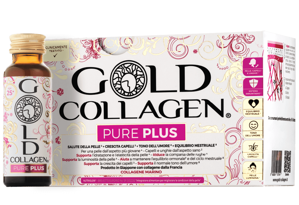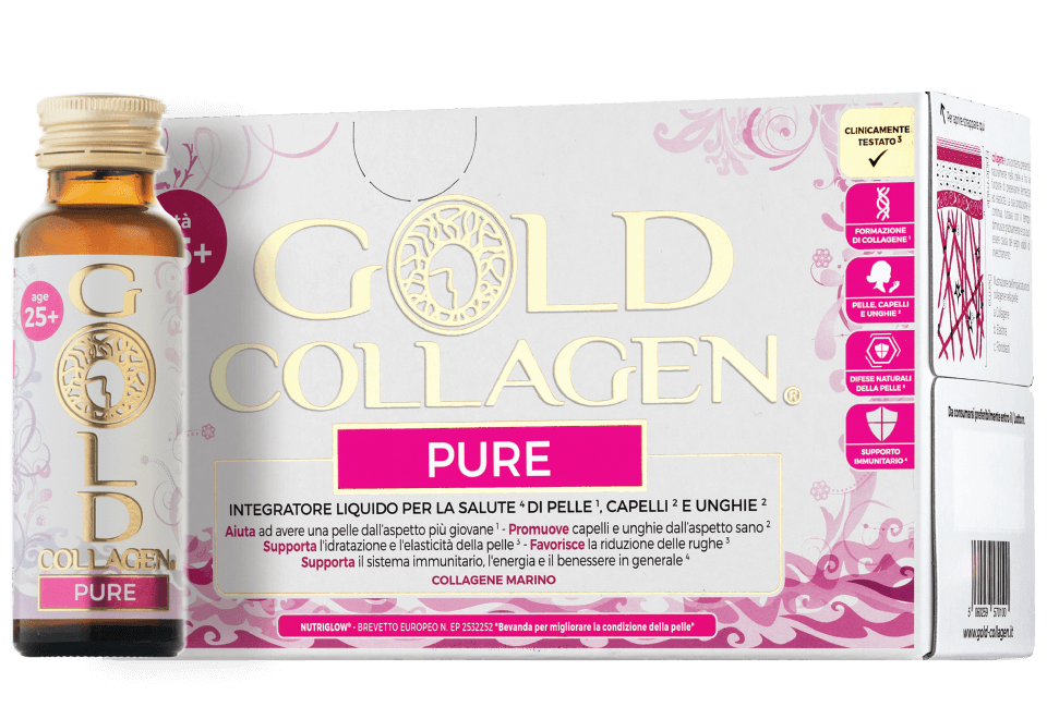 Un integratore non vale l’altro. È basilare quindi affidarsi a formulazioni brevettate e scientificamente sviluppate, in grado di fornire le adeguate combinazioni di ingredienti per una migliore efficacia. Gold Collagen formula i suoi integratori sulla base di ricerche intensive condotte dal team di esperti di MINERVA Research Labs composto da dottori, nutrizionisti e scienziati. Ultimo nato nel “menù” di integratori liquidi a base di collagene è Gold Collagen Pure Plus, ideale per combattere i primi segni dell’invecchiamento. La combinazione unica di 17 ingredienti attivi PURE PLUS potenzia la luminosità della pelle, supporta la crescita dei capelli, rafforza unghie e capigliatura e, a completamento delle sue funzioni, aiuta a mantenere l’equilibrio ormonale e del ciclo mestruale e sostiene il normale tono dell’umore. Senza zuccheri aggiunti, dolcificanti artificiali, glutine, alcool, conservanti e OGM, certificato Halal e Kosher, al piacevole gusto di pesca e arancia, è proposto in flaconi in vetro riciclabile. Ci si possono aspettare risultati visibili in sole tre settimane con una pelle dall’aspetto giovane e radioso, unghie forti e capelli sani e folti. Il consiglio d’uso: un flacone ogni mattina, preferibilmente a digiuno, per almeno dieci giorni o per un mese per potenziare gli effetti del prodotto.
